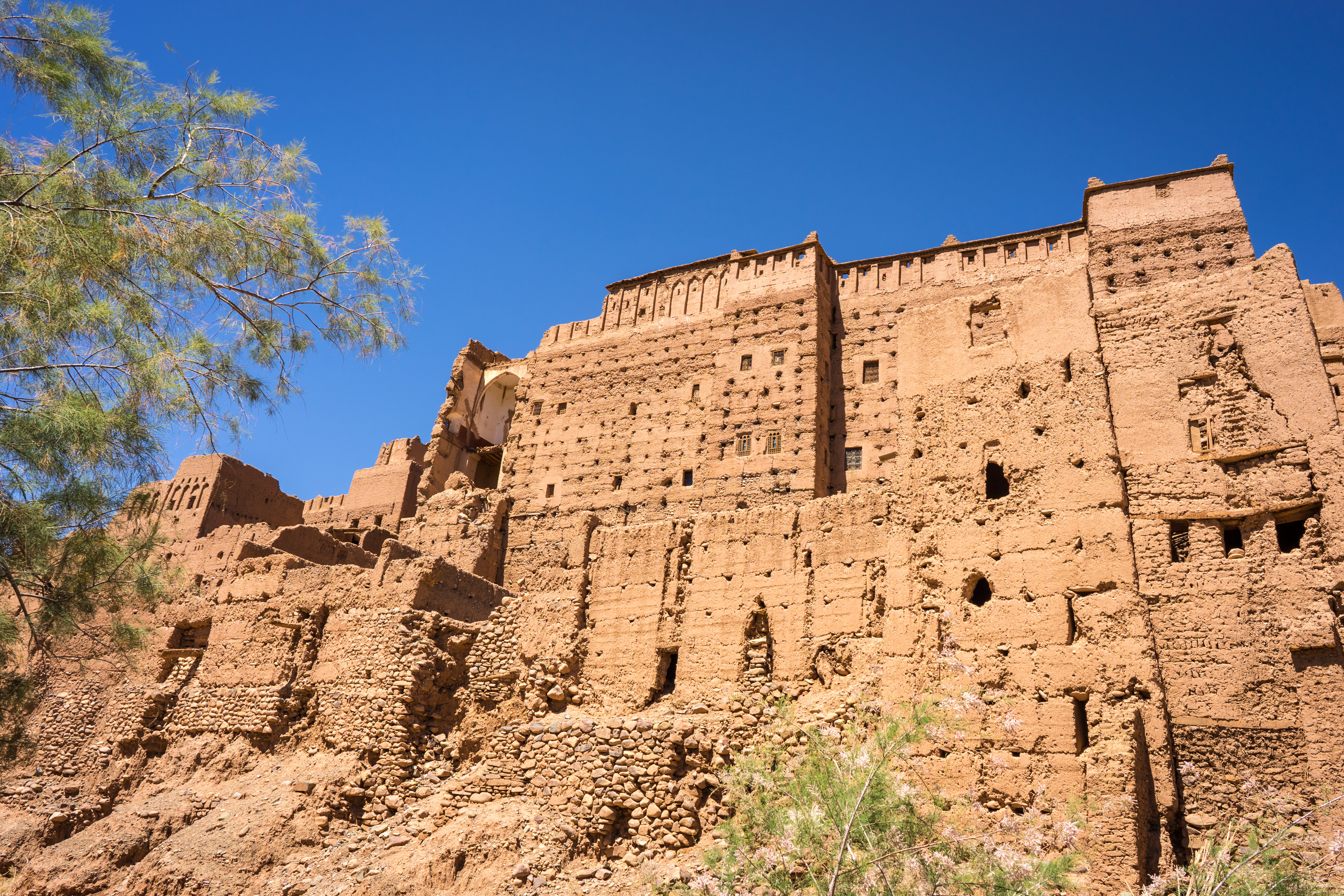 Evening mood on Riad dar Latifa Spice shop in the medina Leather goods on sale in the medina View over the medina Broken graffiti Kasbah des Caids View over the oasis On the road between Zagora and Ouarzazete Hotel Palais Salam Hotel Palais Salam Busy street during nighttime View on the city